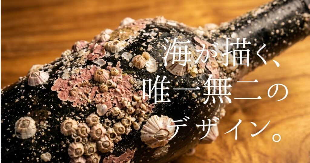 唯一無二の価値: 海底がデザインしたフジツボ付きのボトルは、世界にたった一つ。