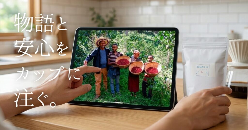 「エチオピアの〇〇農園で、〇〇さんが丹精込めて育てた」という背景を知ることは、ワインのヴィンテージを楽しむ感覚に似ています。